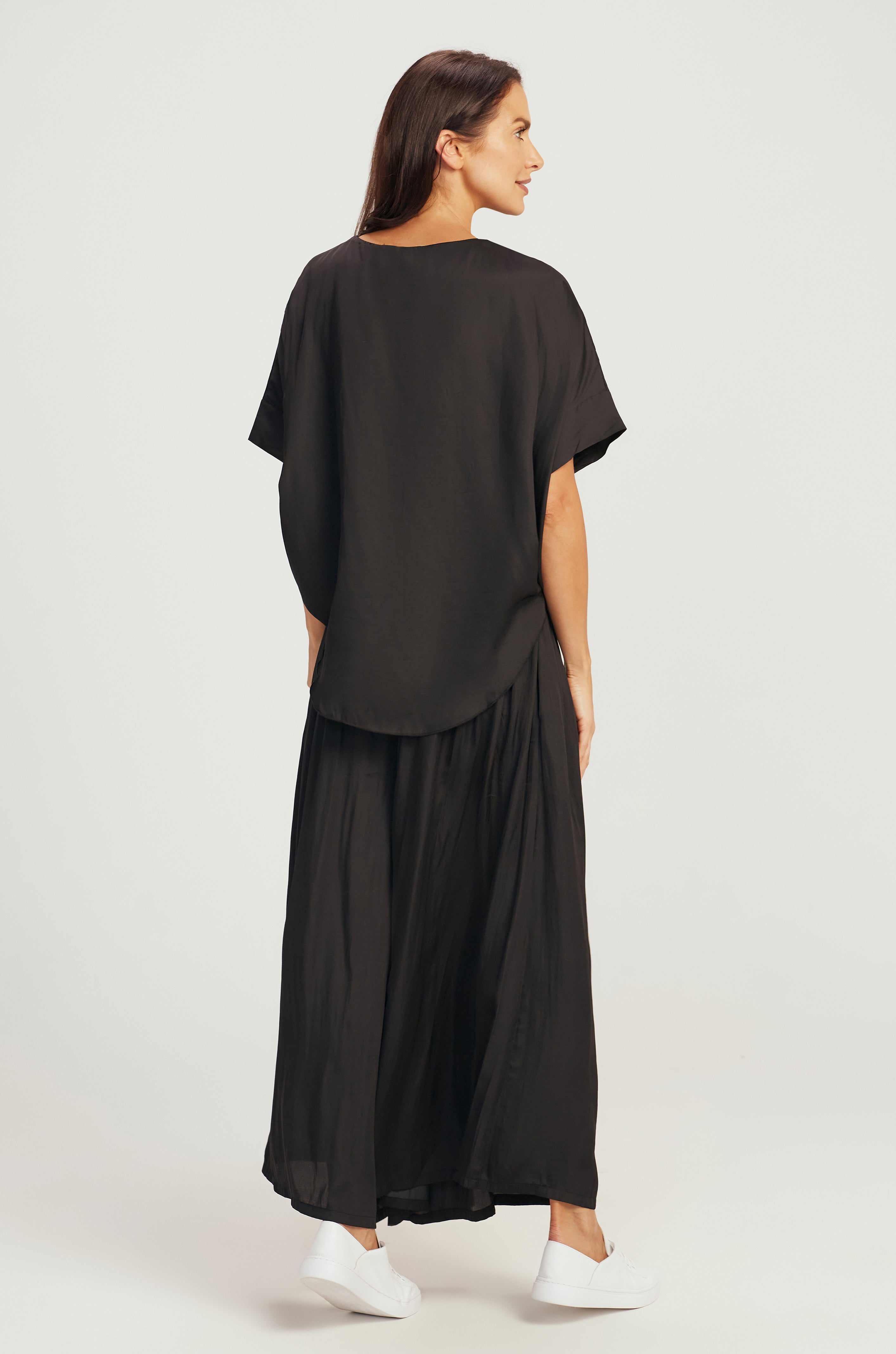 -Super soft lustrous silk feel fabric. This style is a perfect basic that you can dress up or down .