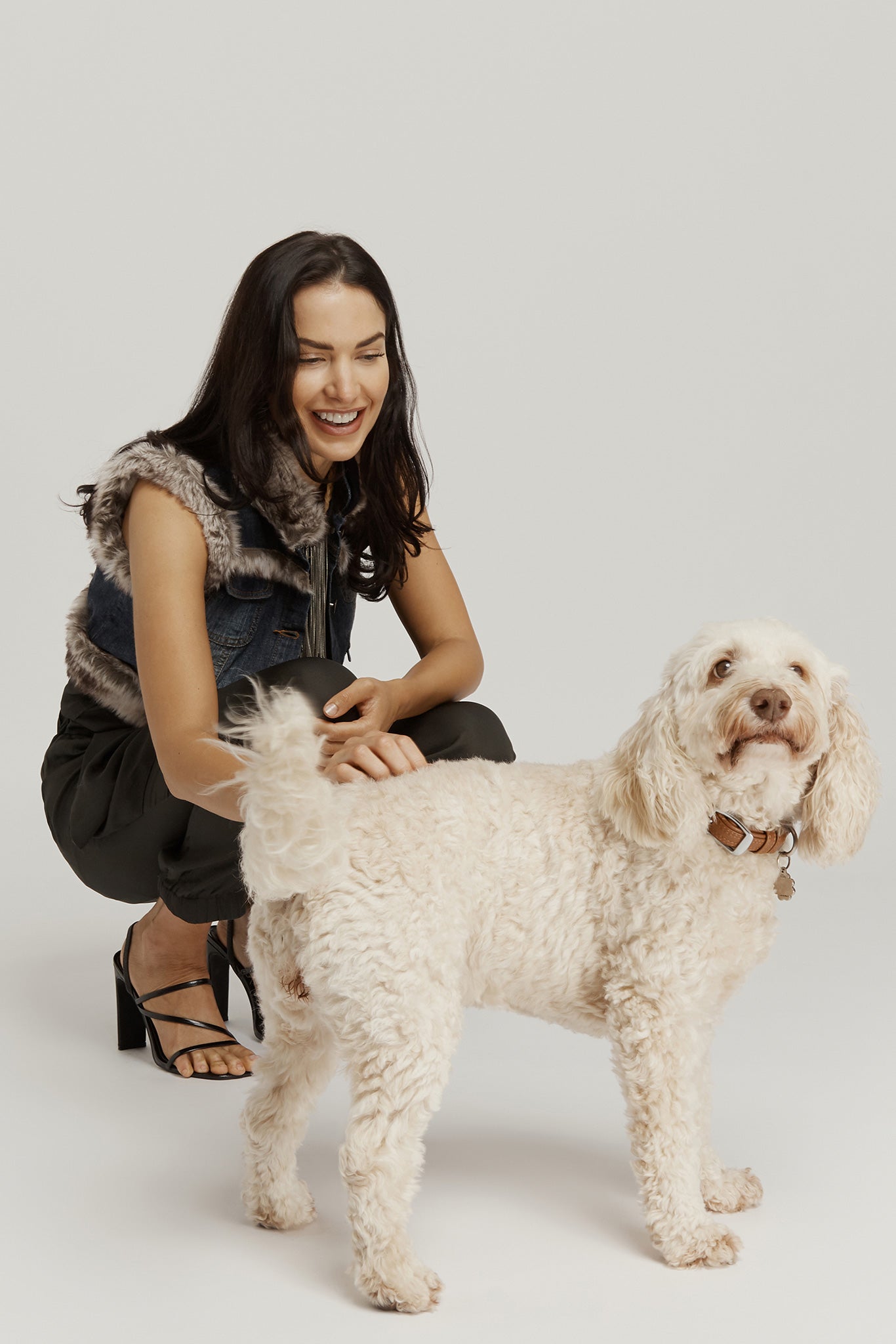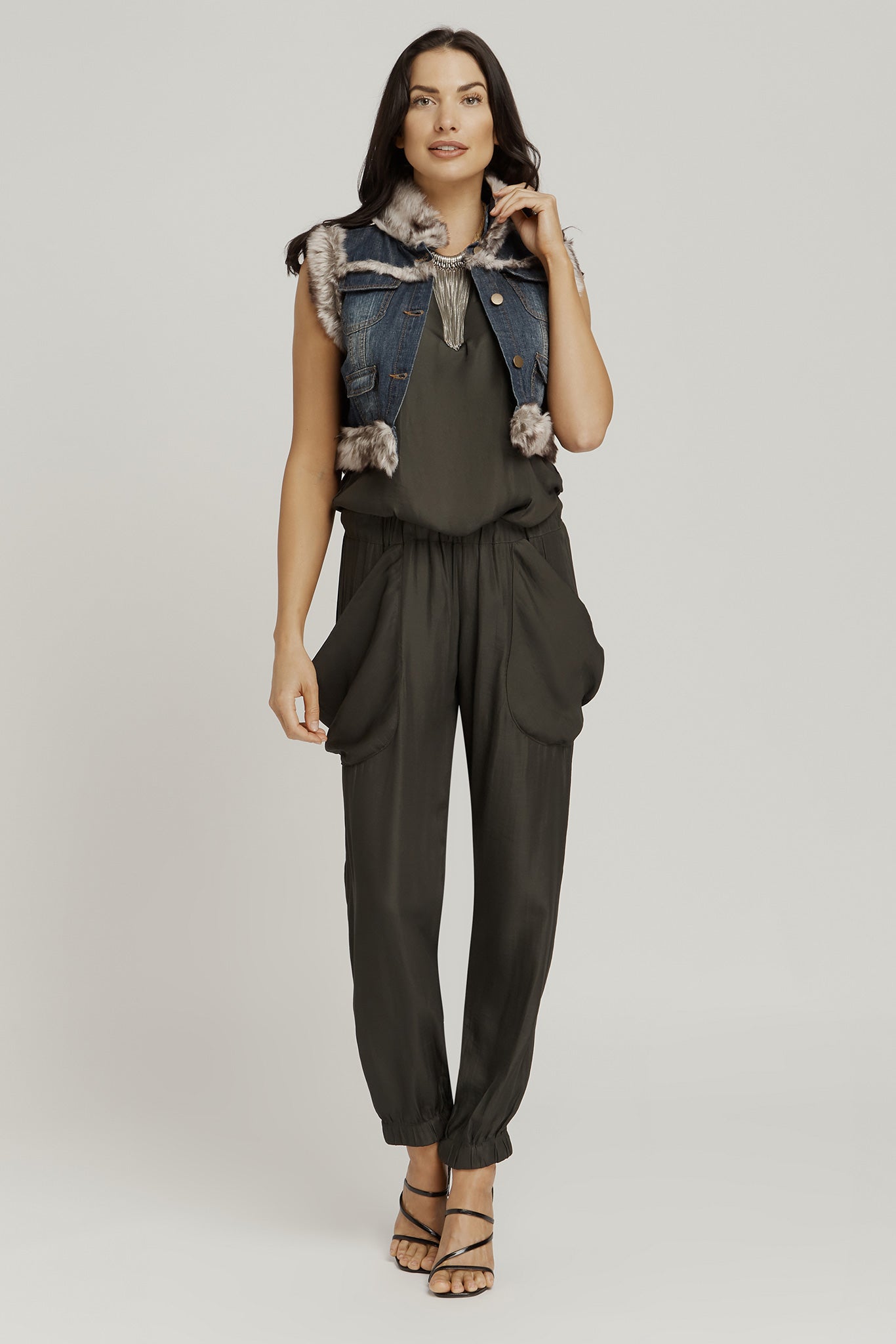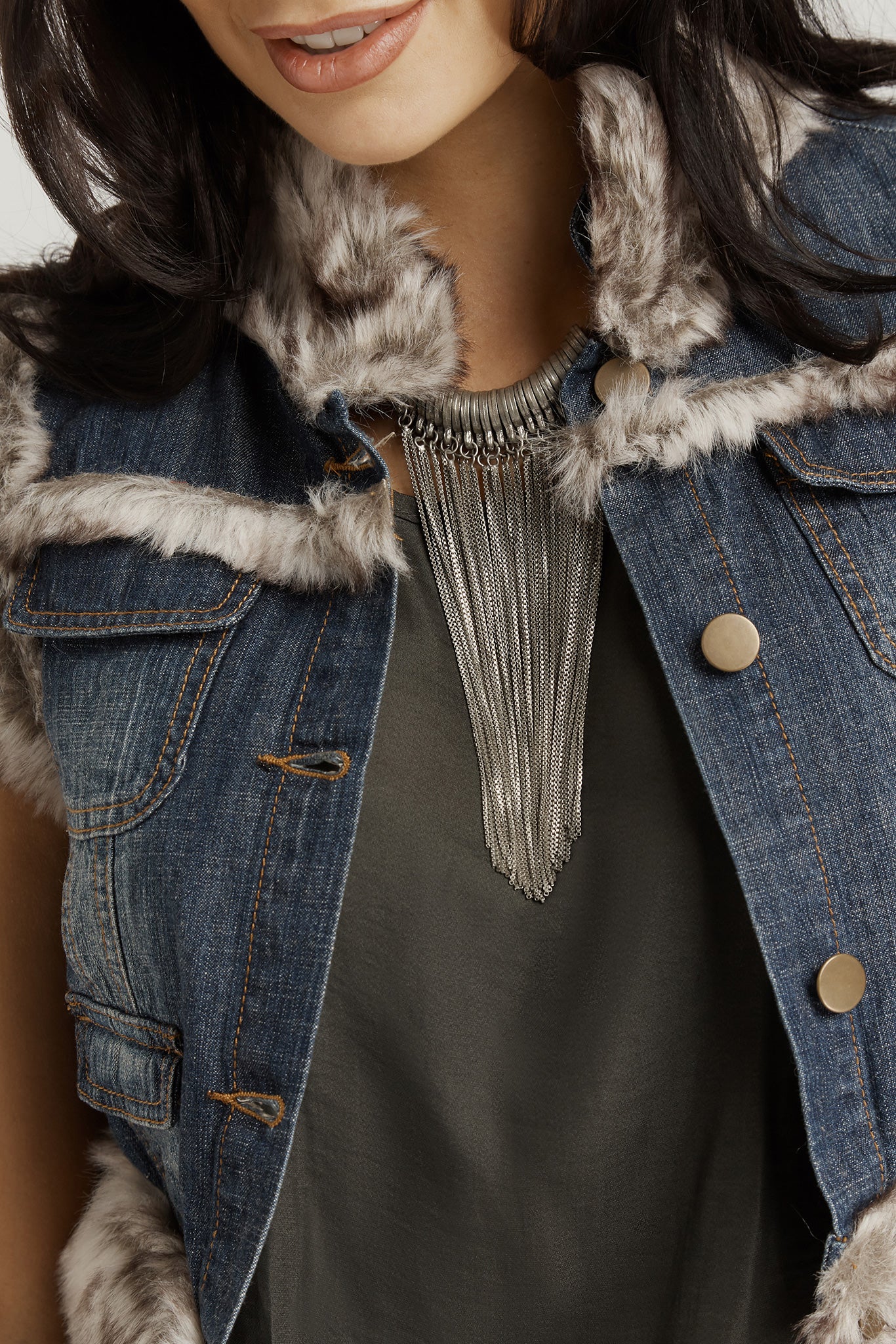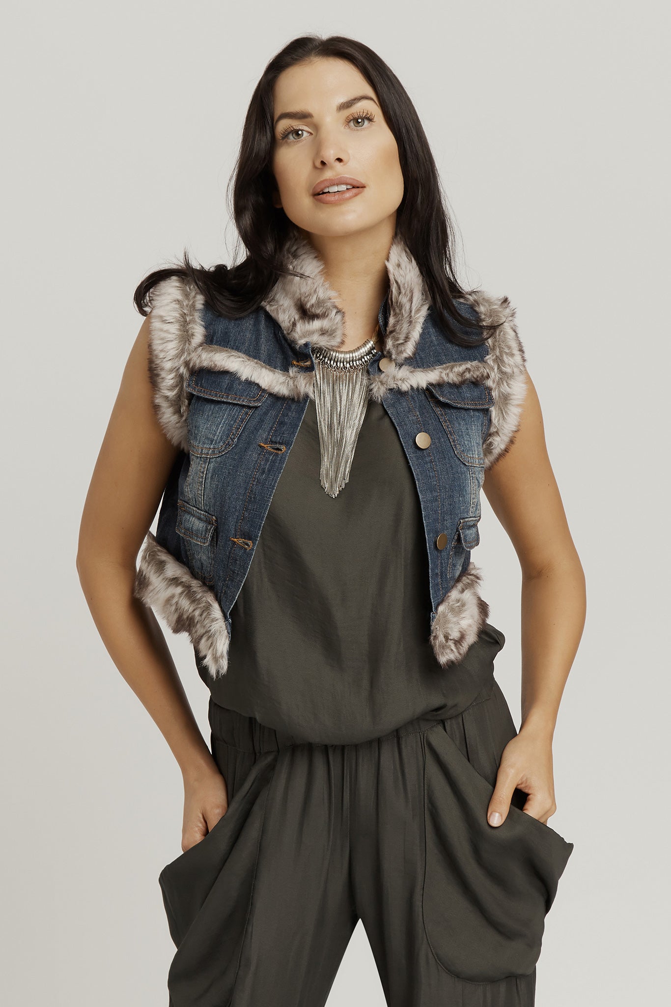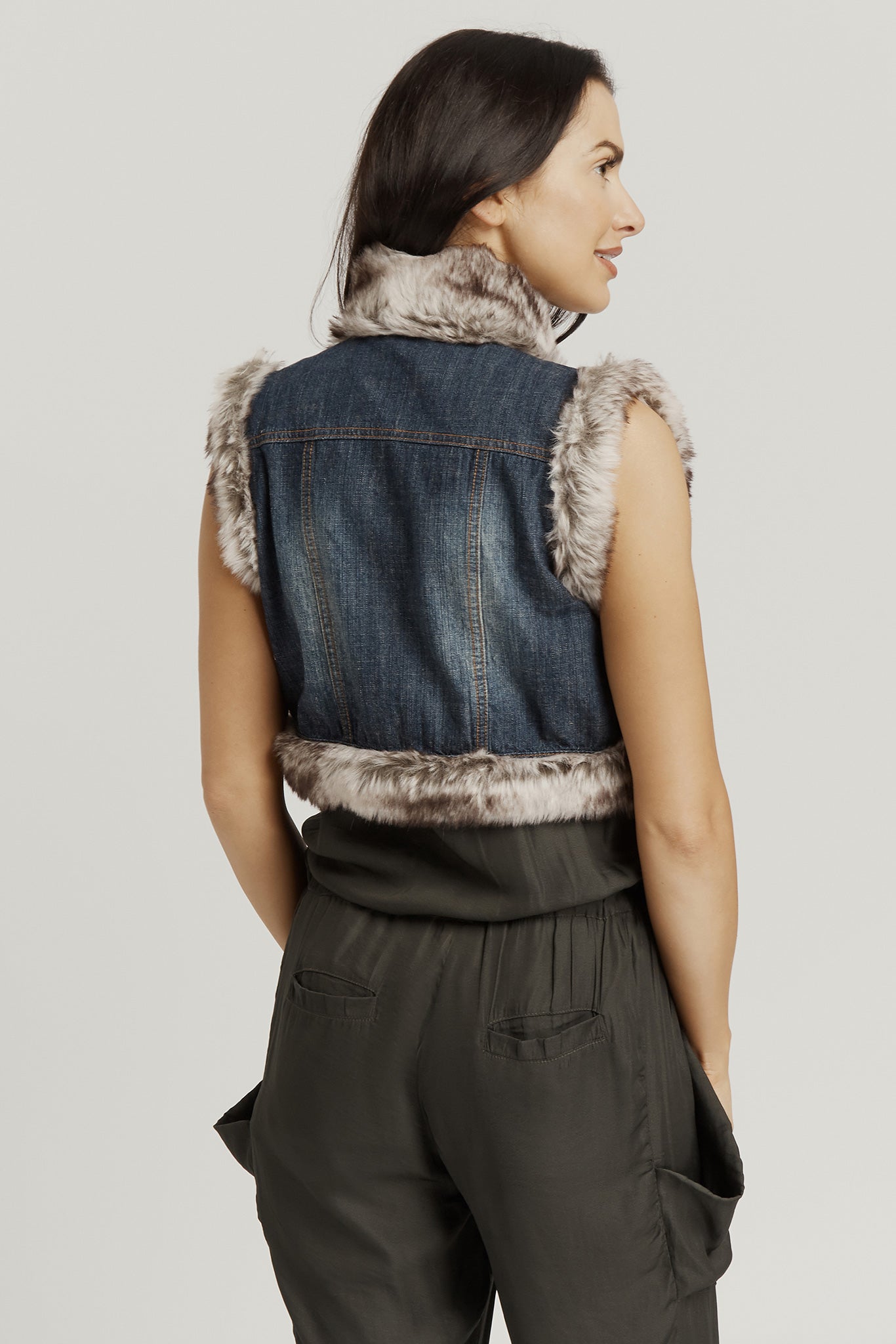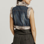 Cropped Faux Fur Jacket - Denim