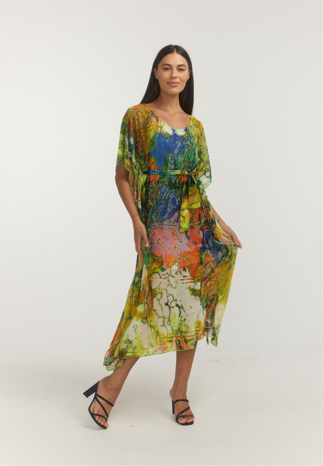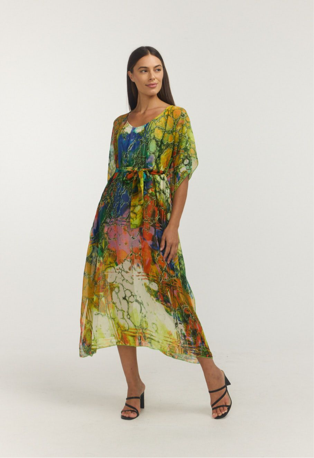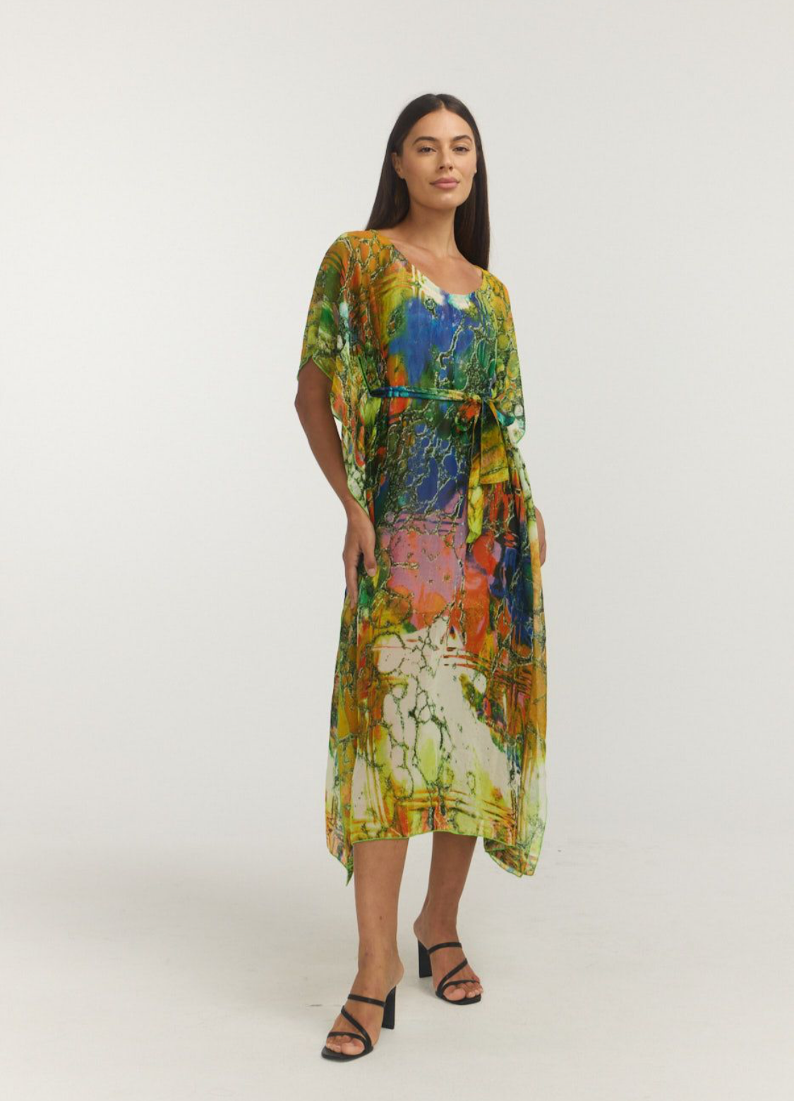 The fabric is a chiffon which has been digital printed, so it is super comfortable .
