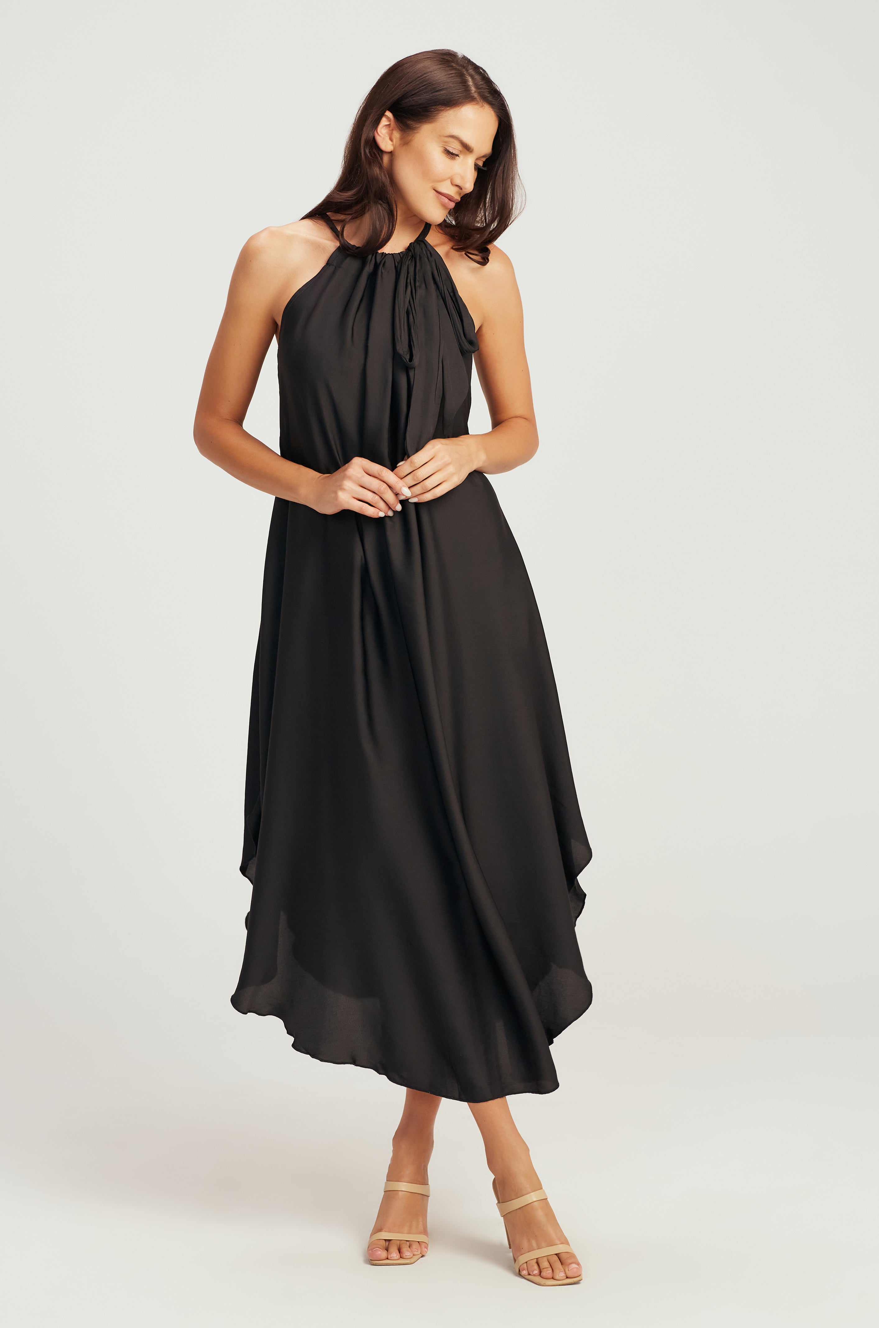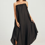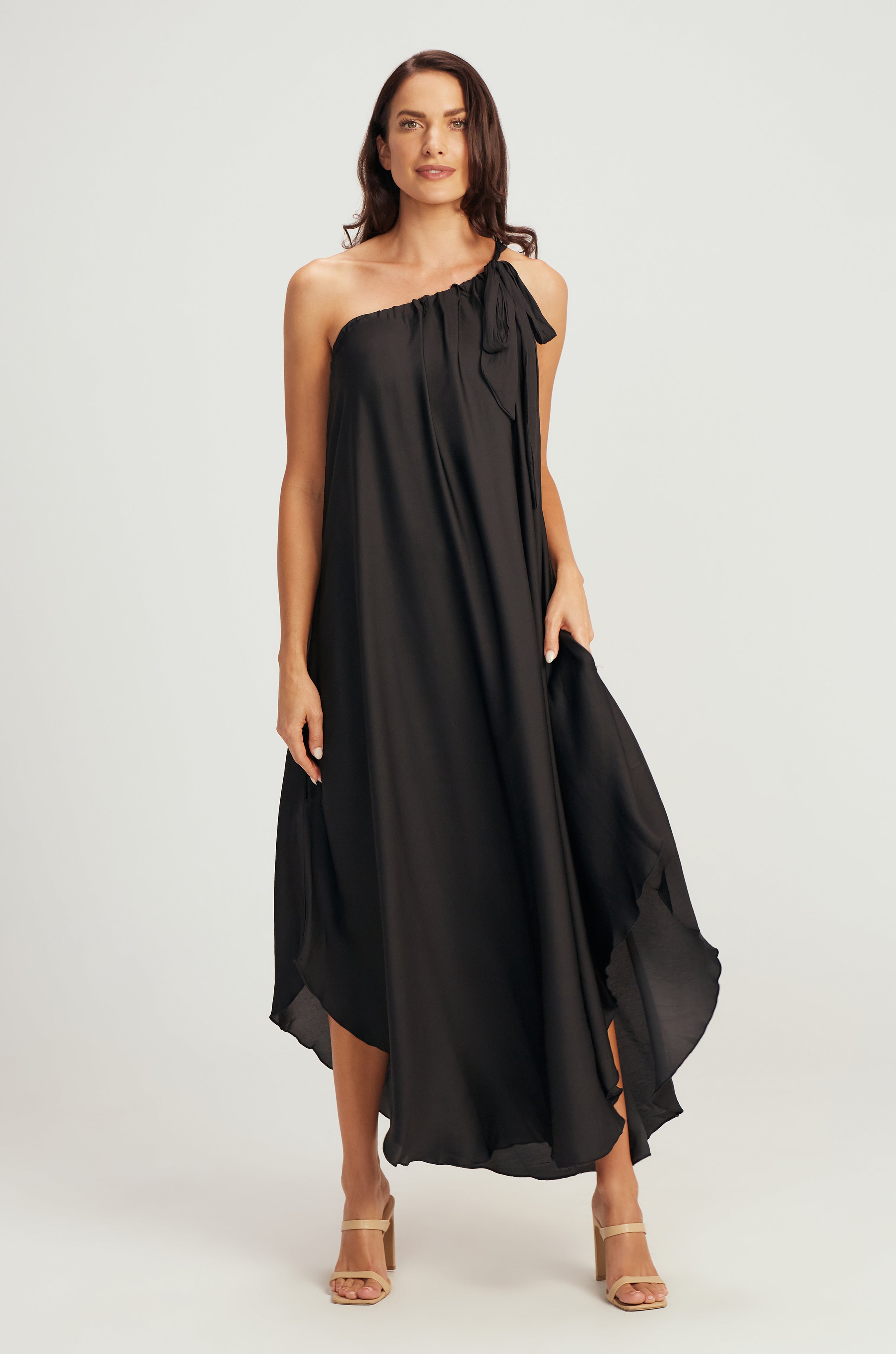 The dress SHAPE has been rounded at the hemline so that it doesn't matter if you are short ( you won't look like you are drowning in fabric) and if you are Tall ( It won't look like it is at an odd length ) . It's the prefect dress for all shapes and sizes. Big bust , NO bust ..you have the option to change it to suit your body shape and for any occasion .
