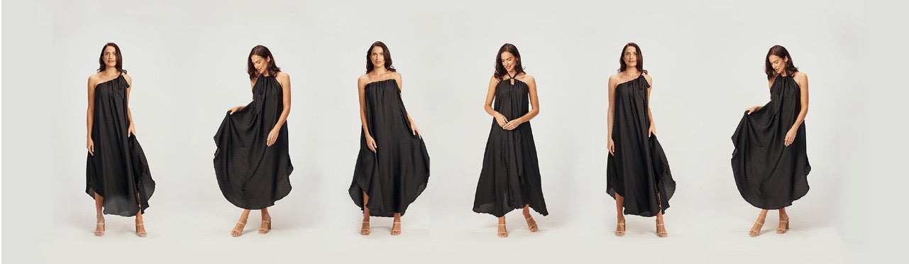 Can be worn THE ORIGINAL WAY, OFF THE SHOULDER, STRAPLESS or HALTER NECK and comes with a matching sash to pop around the waist or hips to create a dressy or more casual look .
