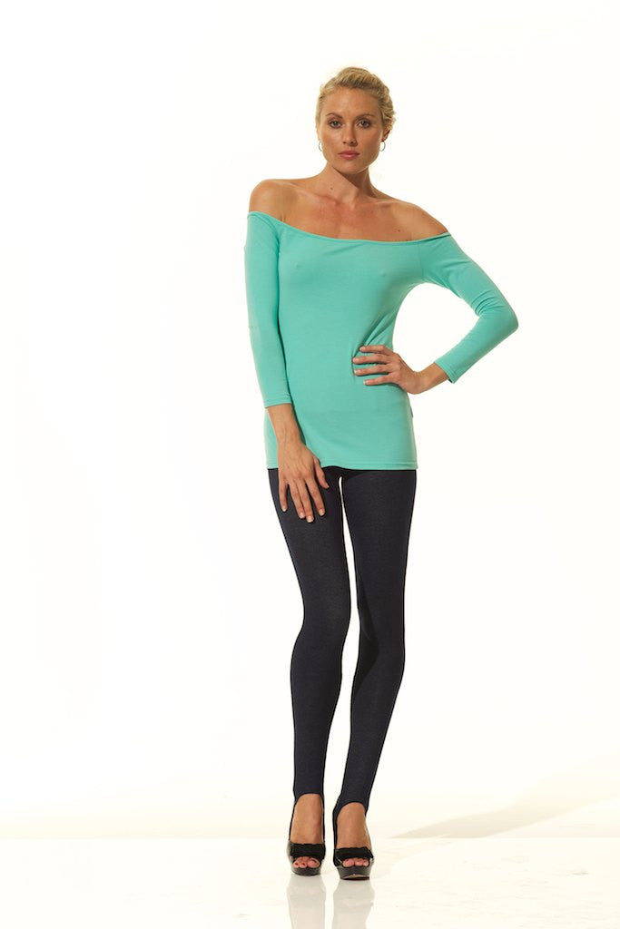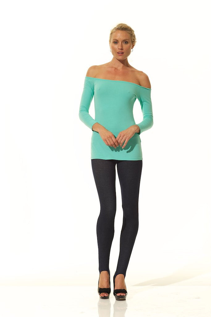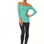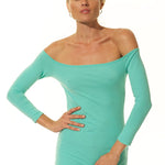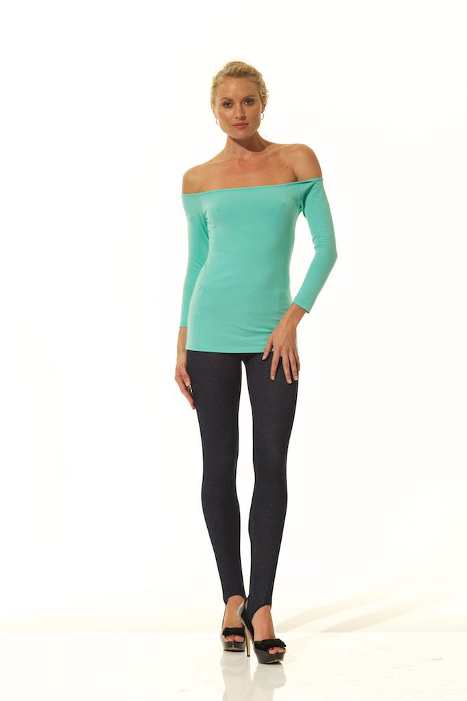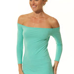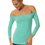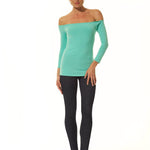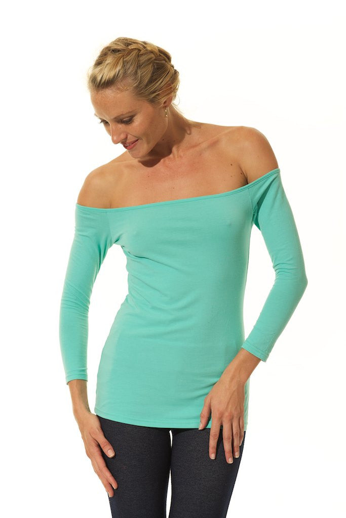 Elegant Off the shoulder fitted top to accentuate the shoulders .