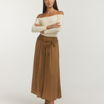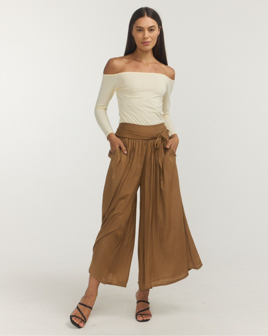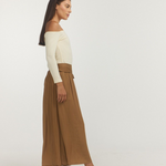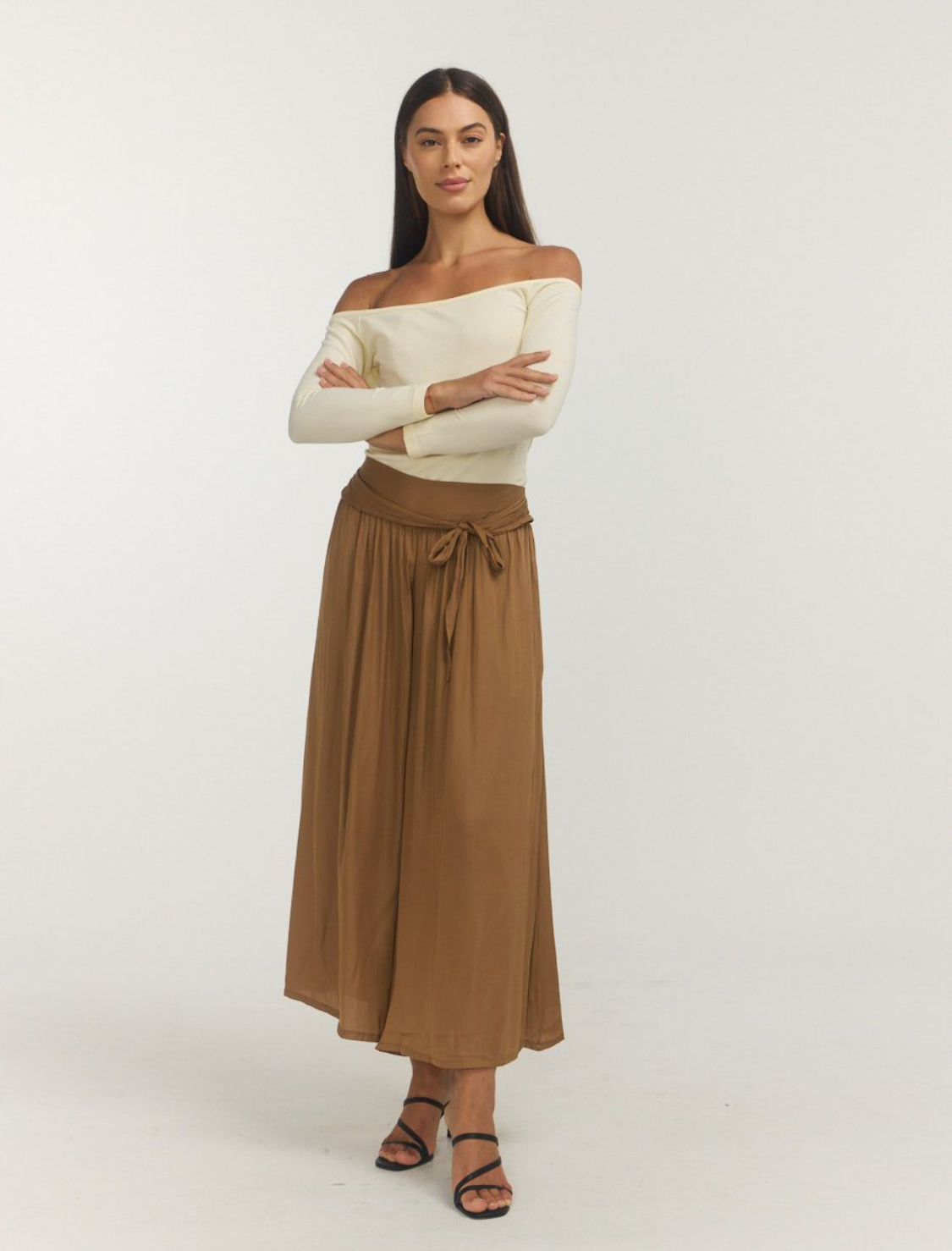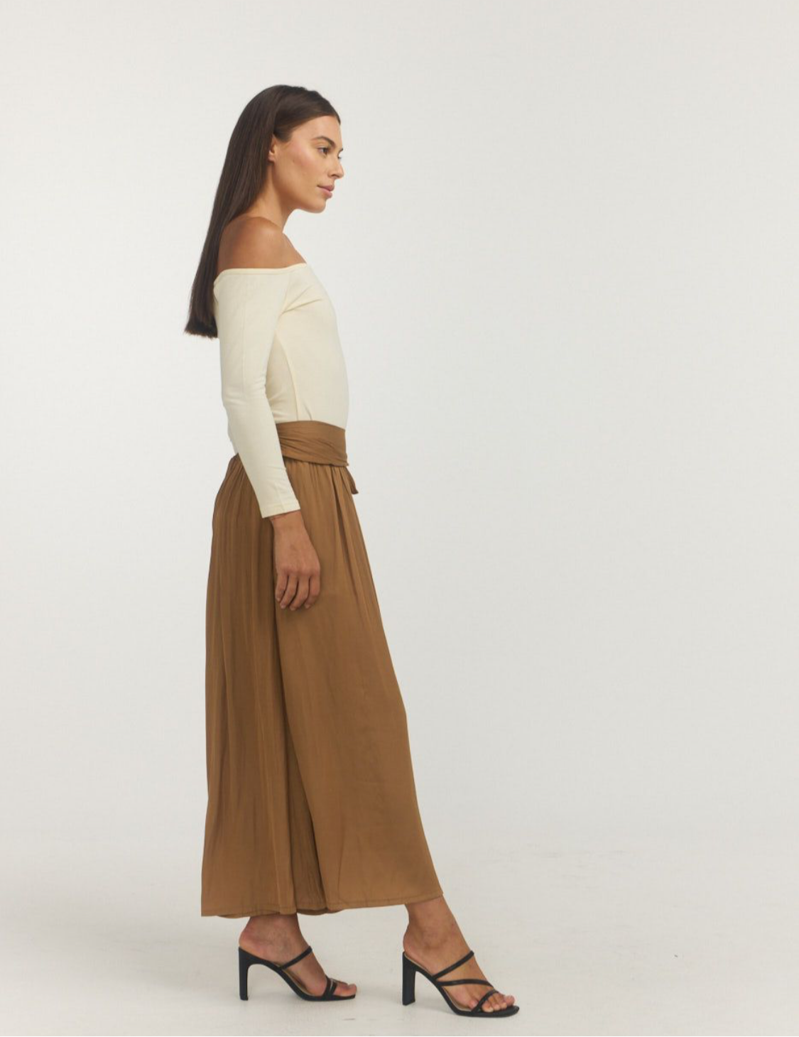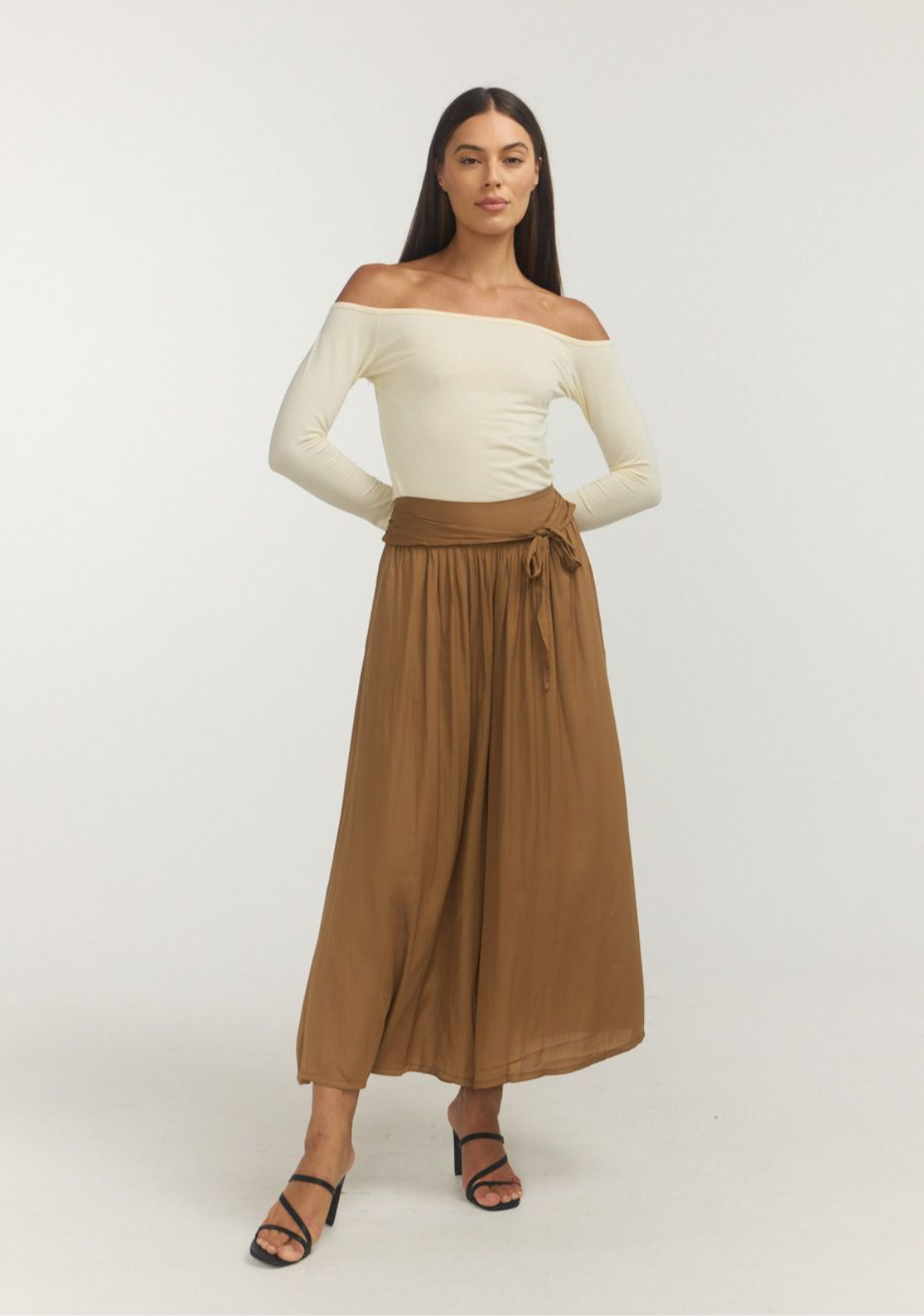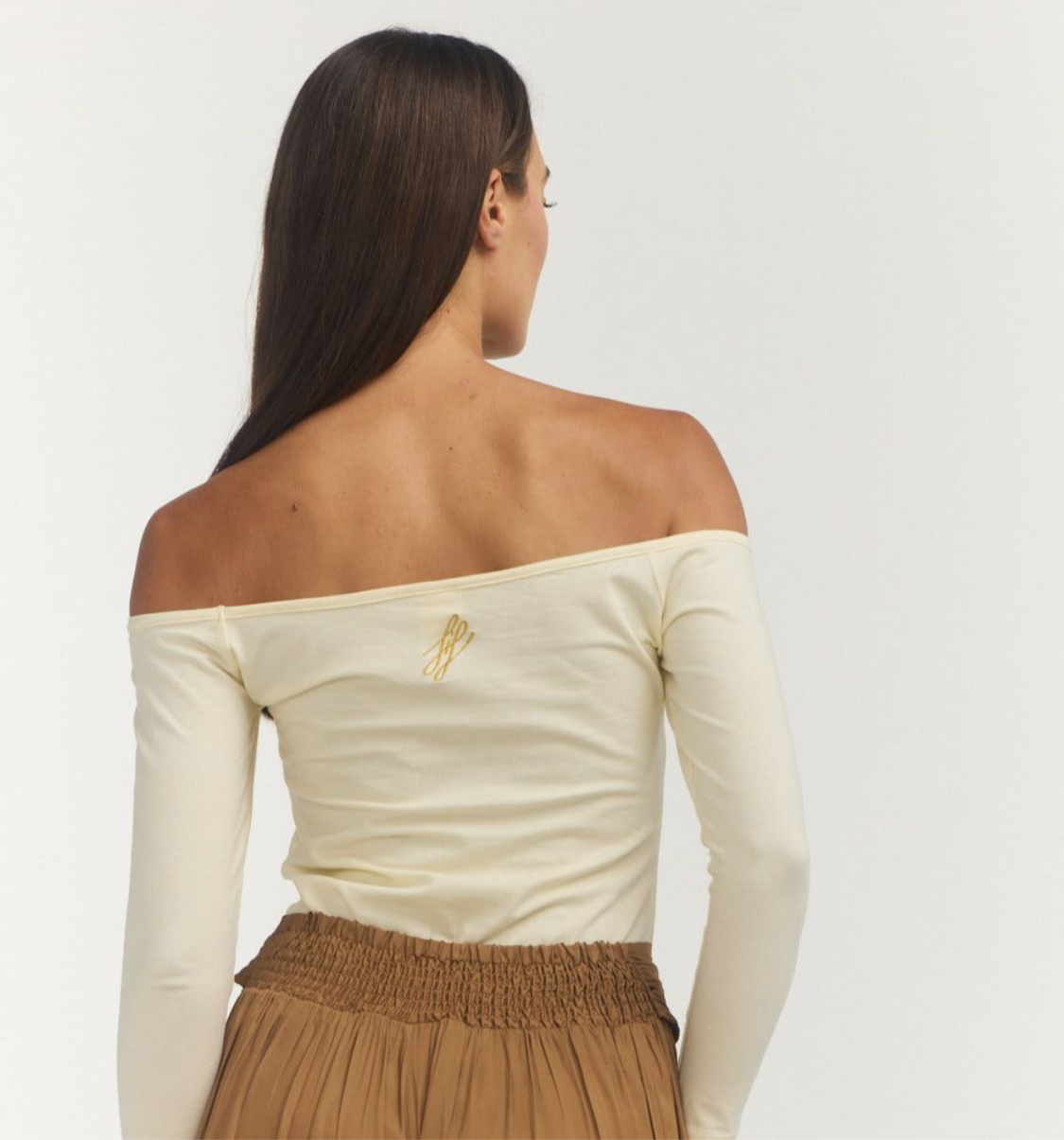 Elegant Off the shoulder fitted top to accentuate the shoulders .