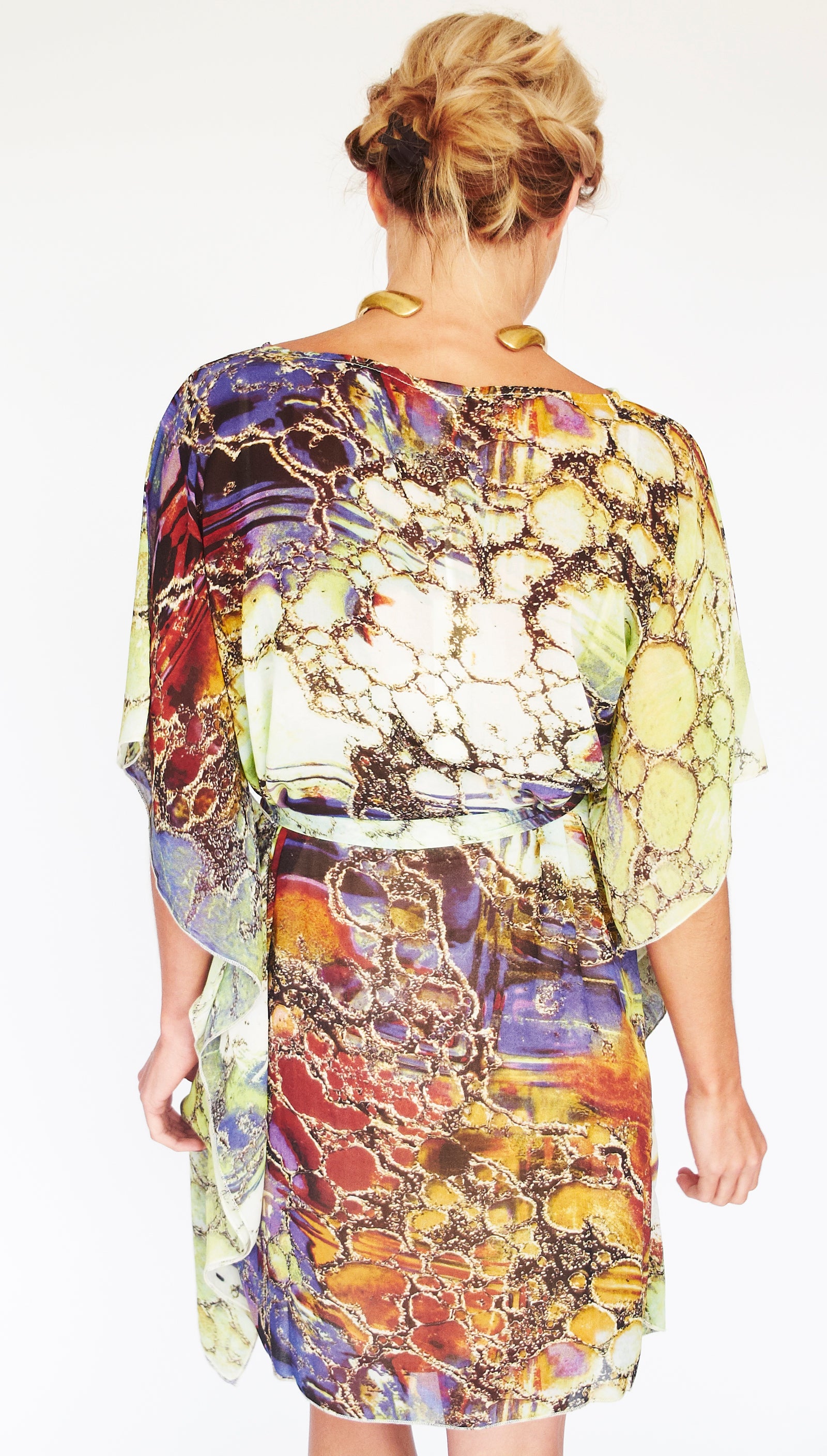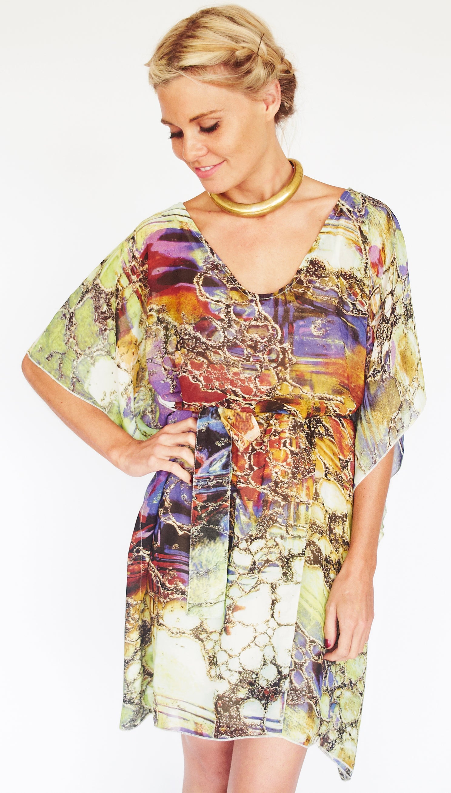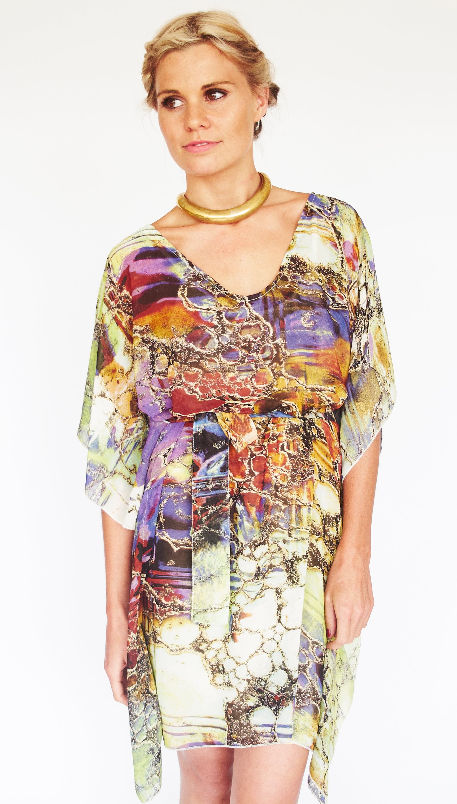 The fabric is a chiffon which has been digital printed, so it is super comfortable .