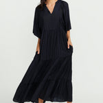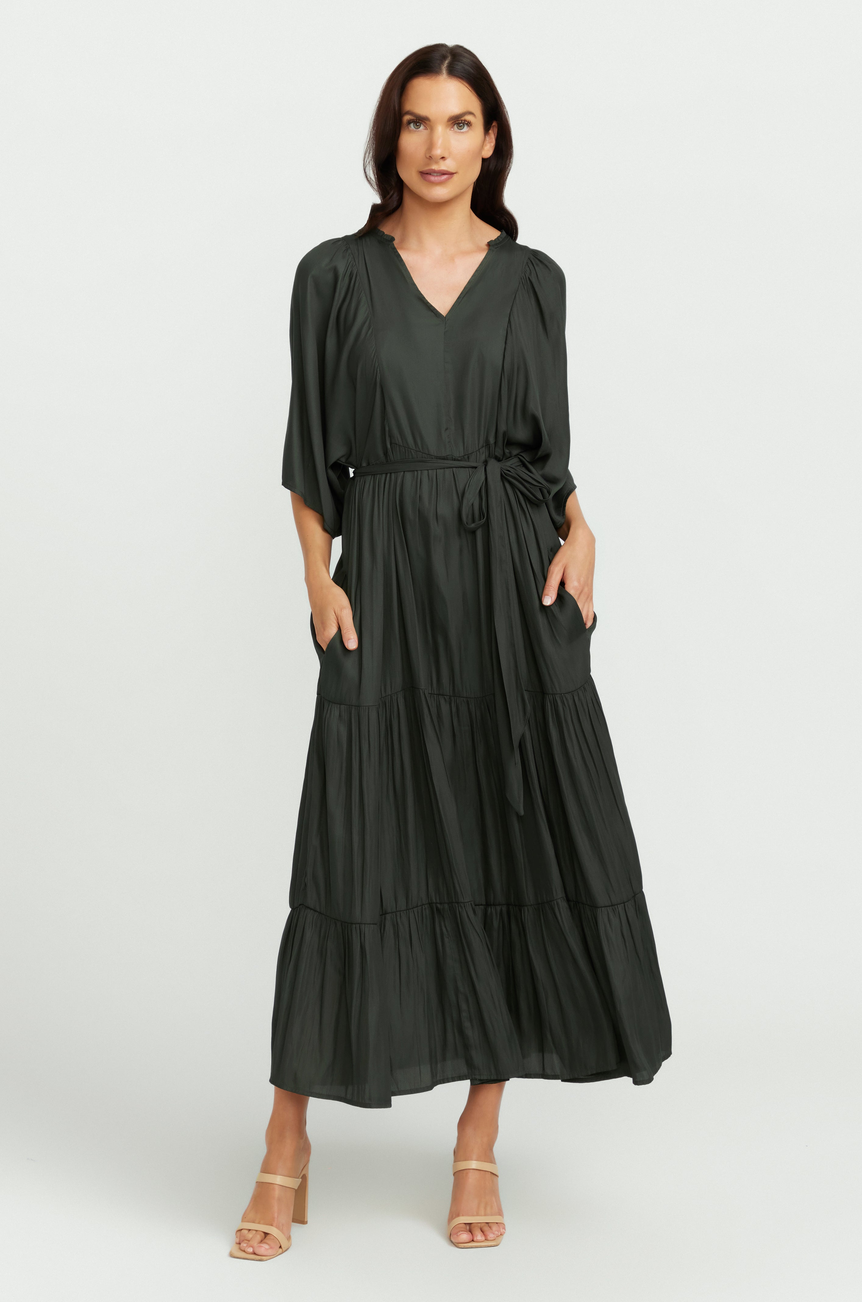The epitome of beauty and elegance. This dress features sleeves and pockets, adding both practicality and style. Perfect for any occasion, dress it up with boots or sandals for a versatile look that transitions effortlessly between seasons. Available in sizes small to 3XL, its V-neckline ensures a flattering fit for all. Discover timeless sophistication with The Gracie Dress.