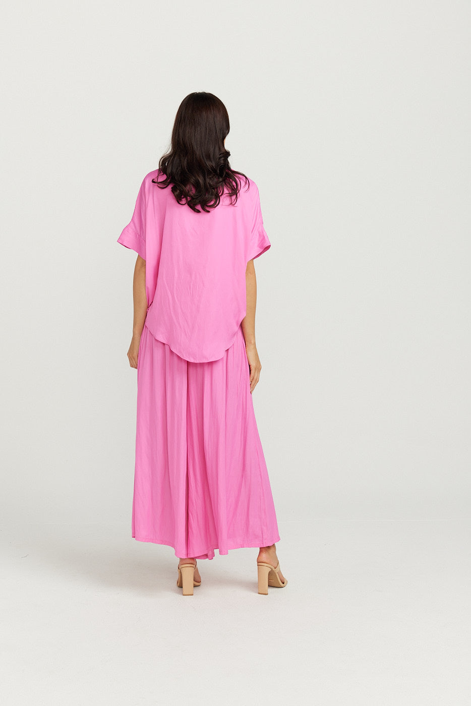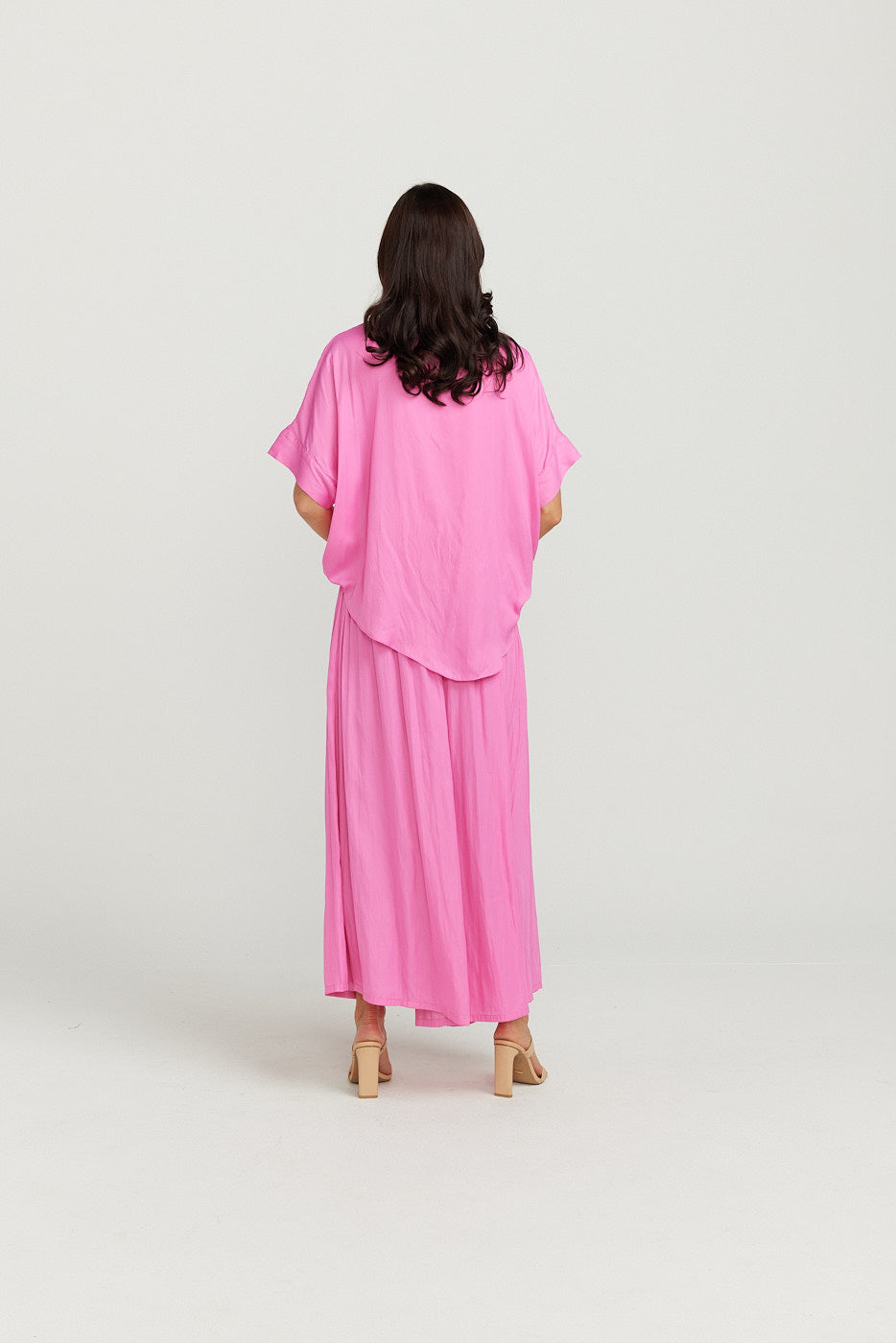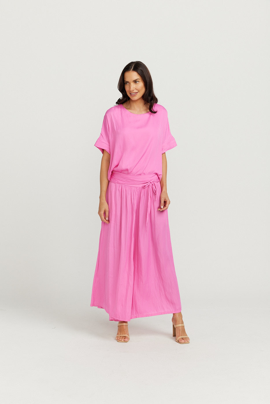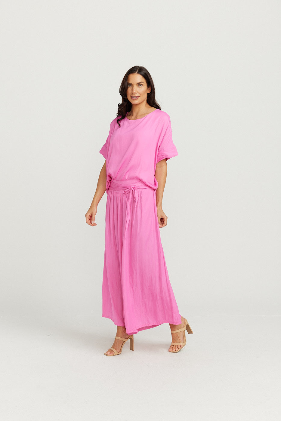 Super soft lustrous silk feel fabric. This style is a perfect basic that you can dress up or down .