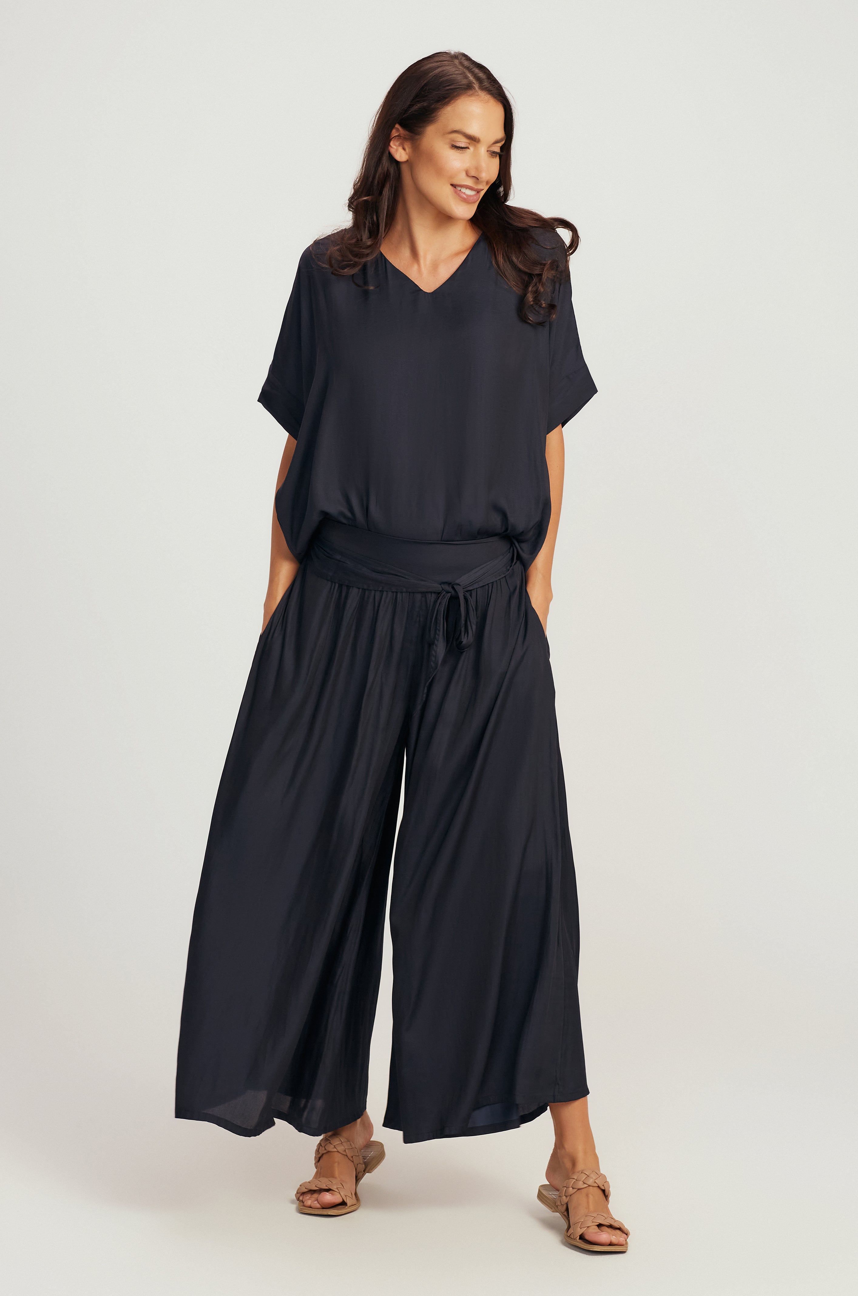 V Neck Top - Navy